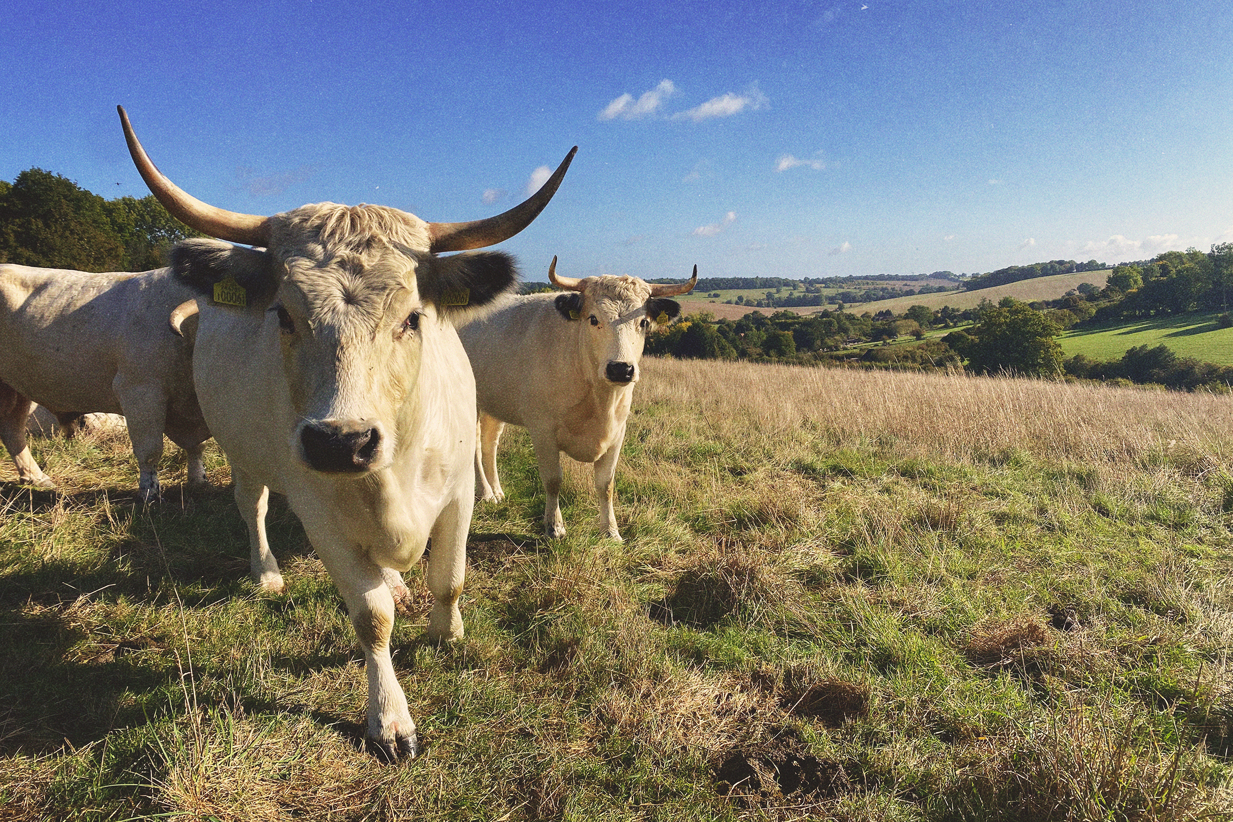 Our herd of pedigree White Park Cattle graze the open pastures of Ashridge estate and its surrounding areas, filling their fundamental role in the healthy and resilient ecology in Ashridge. White Park cattle are an ancient breed of cattle that have been in existence for over 2,000 years. They were once widely distributed throughout the British Isles and were even used as sacrificial animals in Celtic religious ceremonies. Today, they are a rare breed with a small population, but are valued for their hardiness, adaptability, and ability to graze in areas of cultural and ecological significance. They are also known for their distinctive white coloration, docile temperament, and flavorful beef.